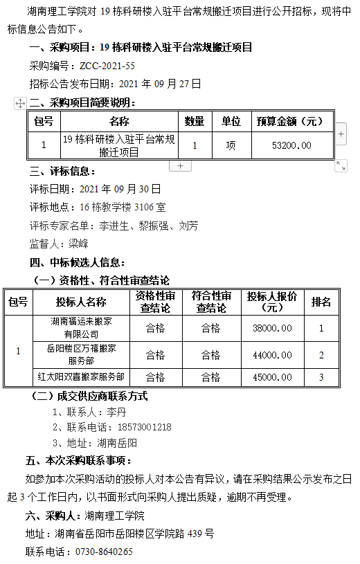 19栋科研楼入驻平台常规搬迁项目中标信息公告