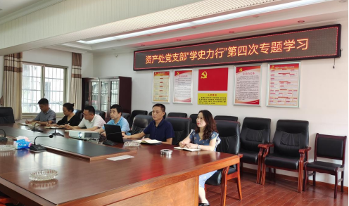 2021年6月22日,资产处党支部在后勤会议室集中开展“学史力行”专题党课学习,全体党员参加,学习由总支书记曾文德同志宣讲。